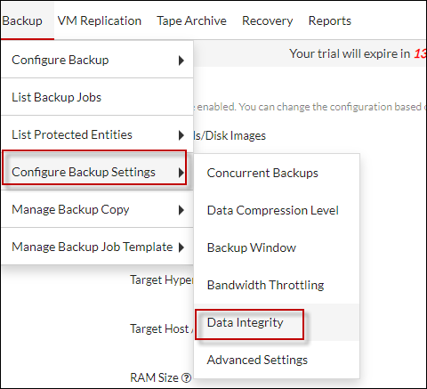 BDRSuite tiene una opción llamada Data Integrity Check para copias de seguridad. Esta opción funciona tanto para máquinas virtuales como servidores Windows. También se aplica a archivos y carpetas de los servidores que utilizan Windows.